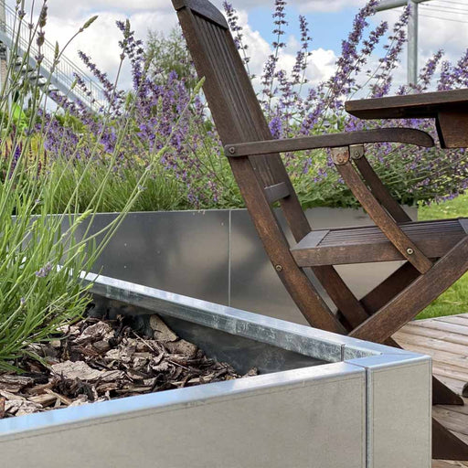 Outdoor FirstSmukt og dekorativt højbed i galvaniseret stål. Højbedet er L-formet og modulopbygget, hvilket betyder at man derfor kan vælge en størrelse der pas...