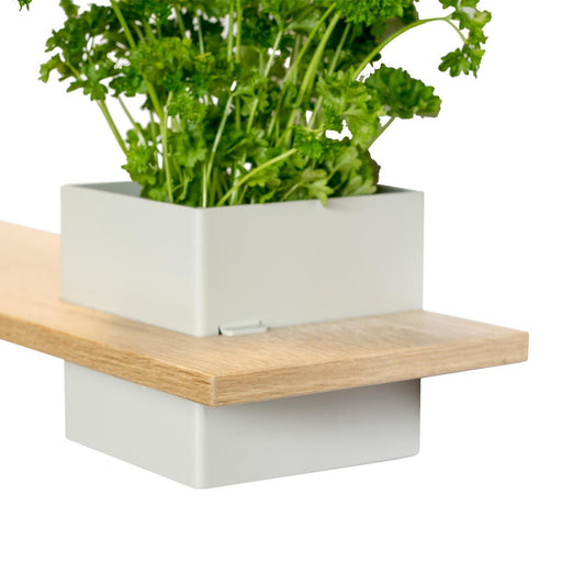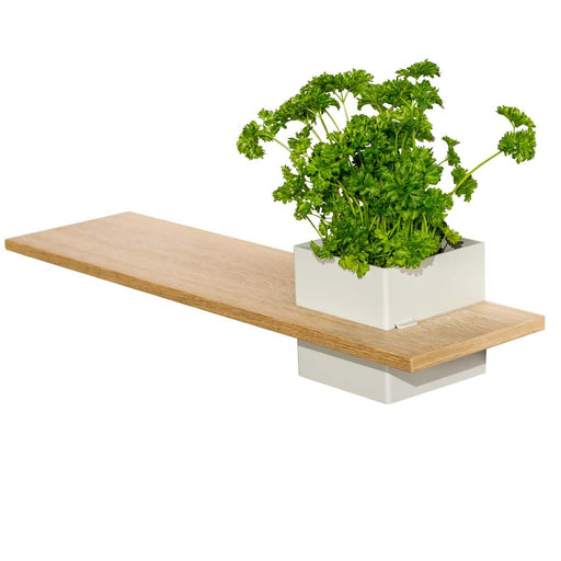 Se alle detaljerGrå box med hylde, væghængt: 1 stk. - LINE - m. MDF egetræshylde