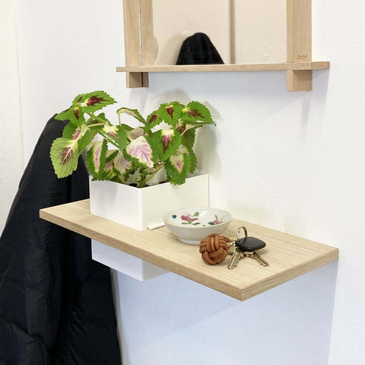 Se alle detaljerHvid box med hylde, væghængt: 1 stk. - LINE - m. MDF egetræshylde