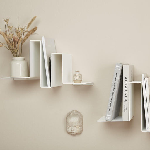 Fås i sort og hvidKunst og funktionalitet i et og samme produkt. Unik boghylde fremstillet i 2 mm aluminium, hvilket giver en lav vægt og sikker montering på væggen....