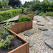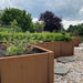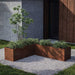 Smukt og dekorativt højbed i Corten stål. Højbedet er L-formet og modulopbygget, hvilket betyder at man derfor kan vælge en størrelse der passer til de fleste. Højbedet leveres uden bund. Siderne på højbedet har en bukket kant, der udover at pynte også øger styrken på højbedet.